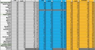 I'll revisit this once the filing deadlines have passed for the remaining states (Louisiana is last on July 19th). The spreadsheet below includes every state except for New York, which is why it's slightly lower (74%) than noted above: