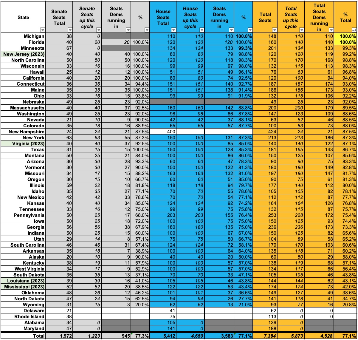 When you include the 578 which were already settled last year in Louisiana, Mississippi, New Jersey & Virginia, that leaves a total of 5,709 seats actually on the ballot during the 2023-2024 cycle:
