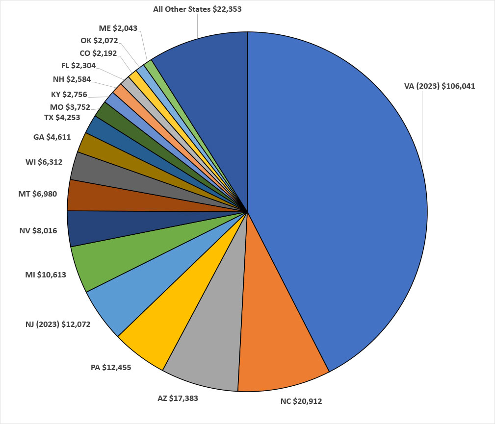 If you go through all 50 of my state legislative fundraising pages, the total will actually come to around ~$267,000, but that also includes around $1,400 raised for President Biden as well as around $15,500 raised for other organizations, mostly Voters of Tomorrow & the abortion/reproductive rights ballot initiatives in Arizona, Florida and Montana.