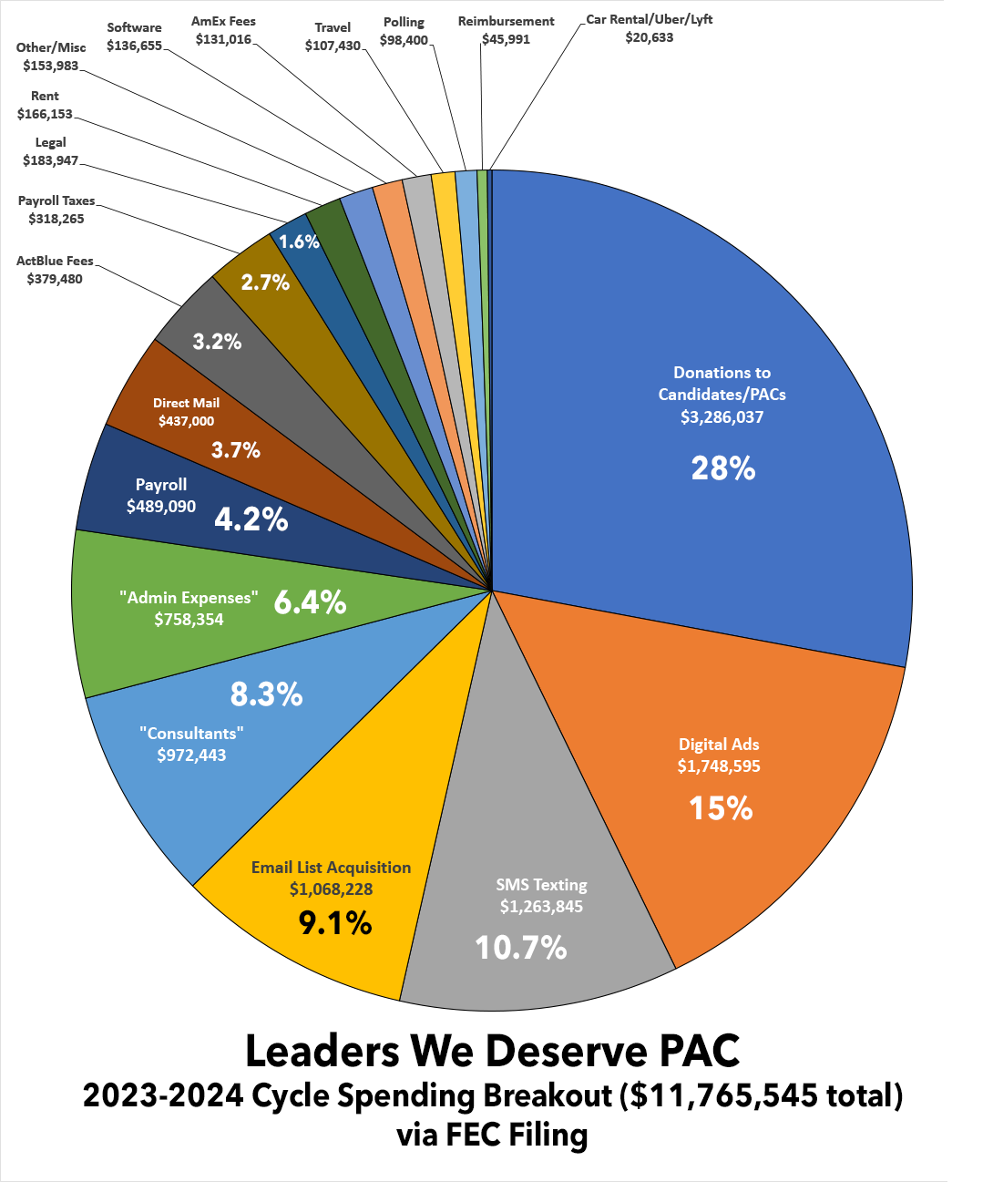 • Donations to actual candidates/PACs/etc: $3,286,037 (27.9%)