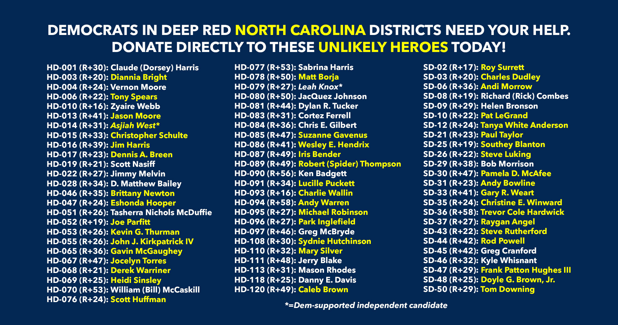 Donate to Democratic candidates running in competitive districts to keep & flip as many seats blue as possible!