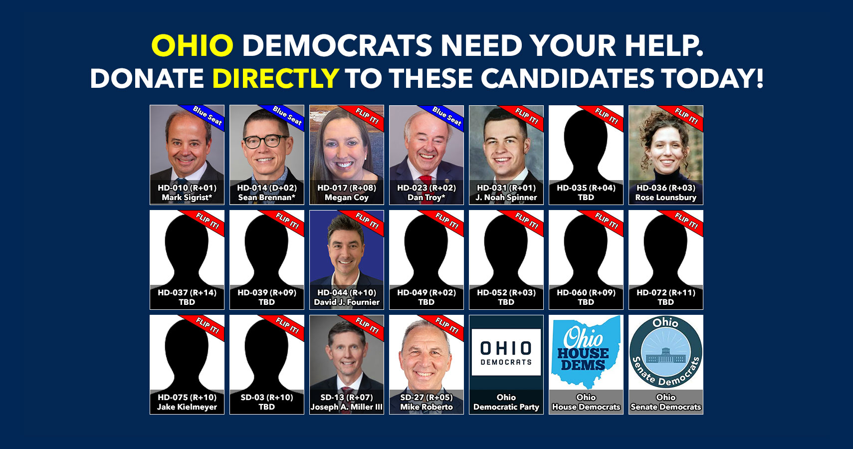 Donate to Democratic candidates running in competitive districts to keep & flip as many seats blue as possible!