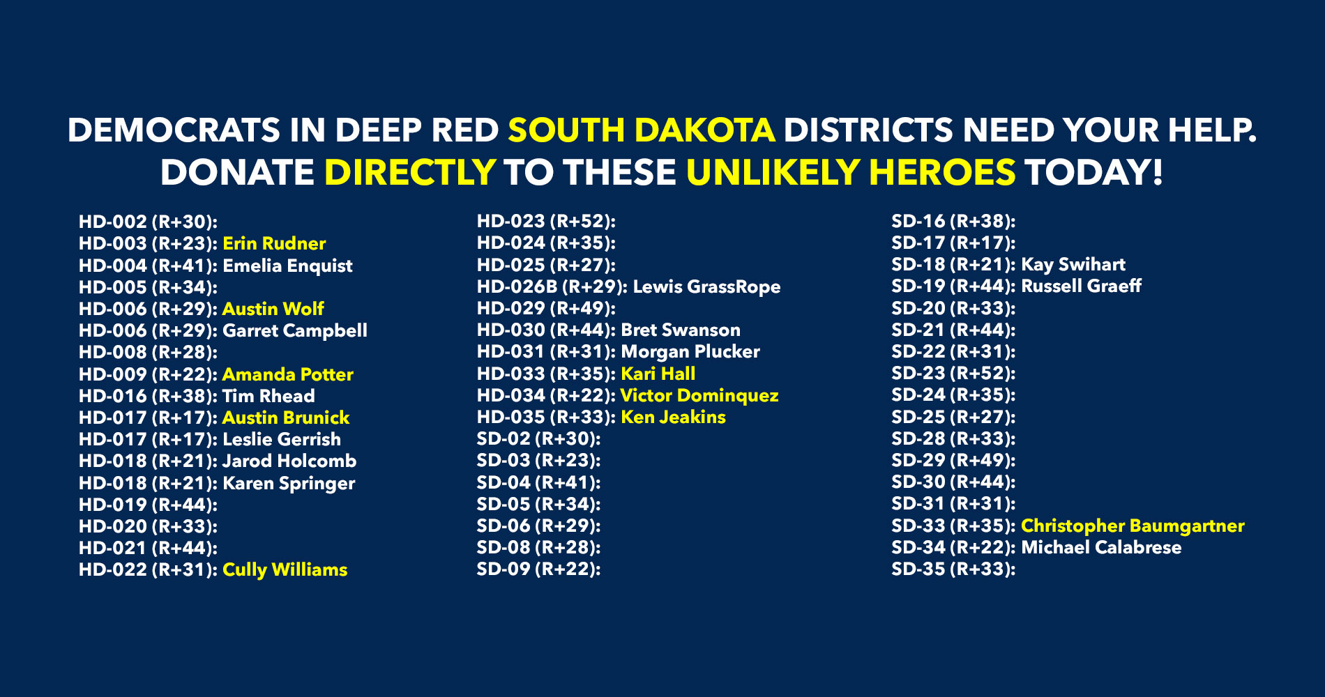 Donate to Democratic candidates running in competitive districts to keep & flip as many seats blue as possible!