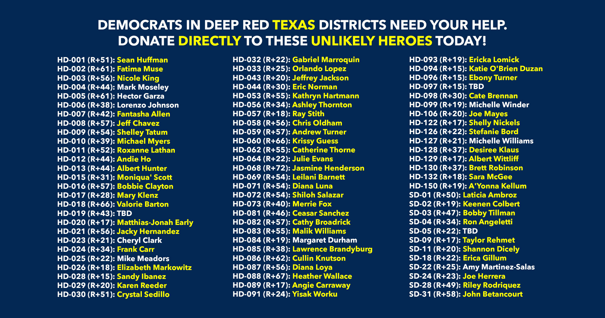Donate to Democrats running in deep red districts to boost turnout & force Republicans to defend their turf!